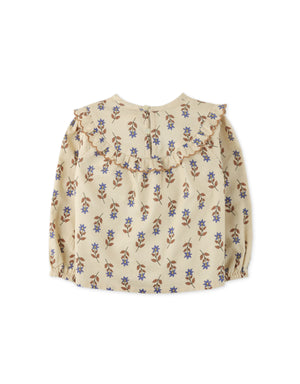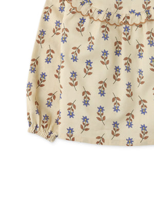 BABY GIRLS FLORAL BLOUSE WITH SCALLOP DETAIL AND CONTRAST EMBRO