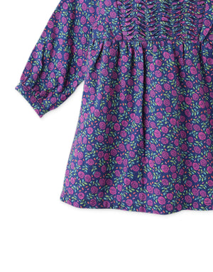 BABY GIRLS FLORAL DRESS WITH CONTRAST SMOCKING DETAILS
