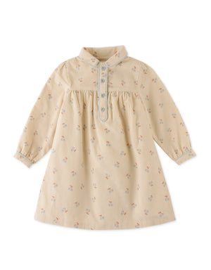 BABY GIRLS PRINTED FINE WALE CORD DRESS WITH COLLAR