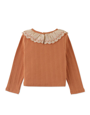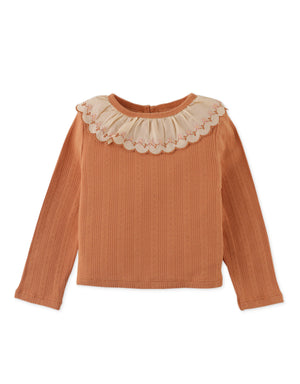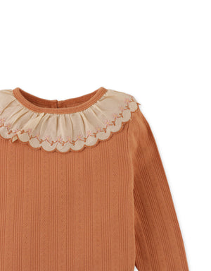 BABY GIRLS RIB TEE WITH EMBROIDERED SCALLOP COLLAR
