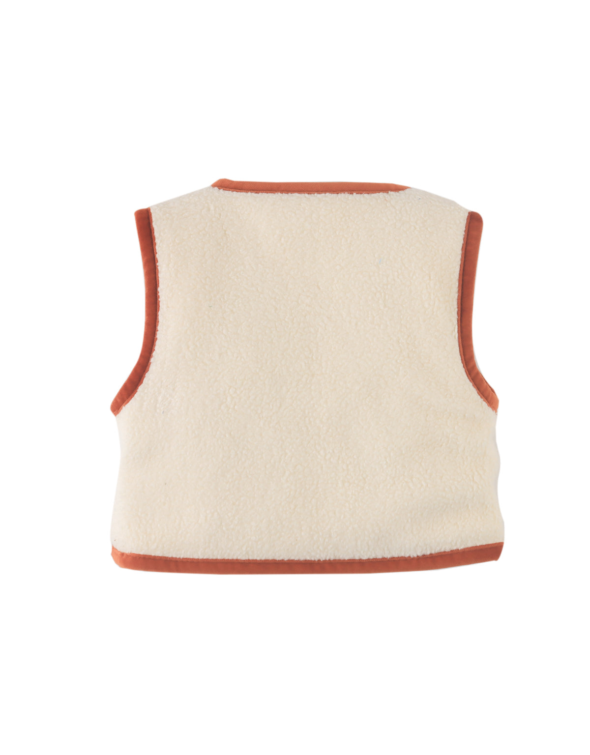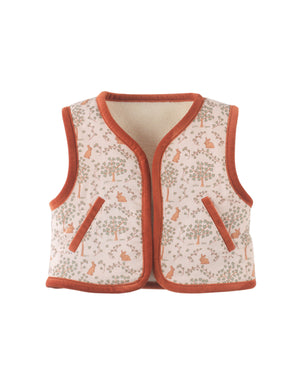 Layer up your little one in the cozy, reversible Baby Glade Gilet in Eggnog, crafted from soft microfleece and adorned with embroidered details for a stylish and versatile look