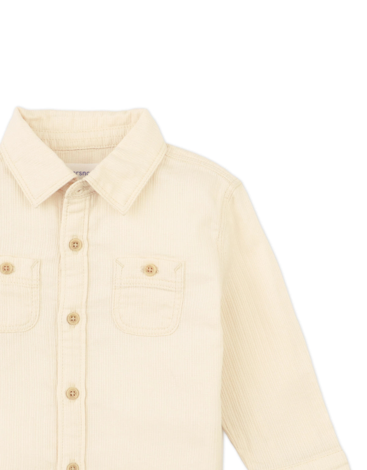 A polished essential - this textured stripe long- sleeve shirt in beige blends comfort and refinement for little gentlemen.