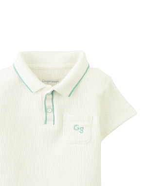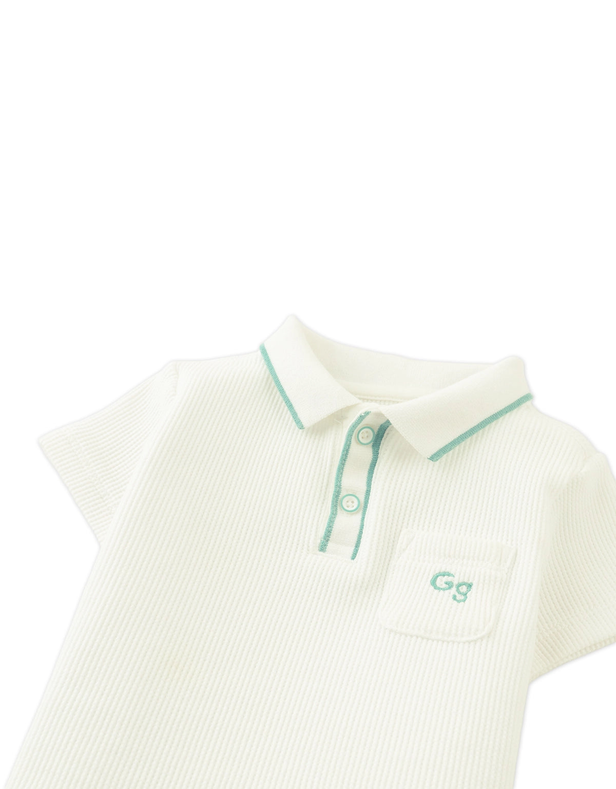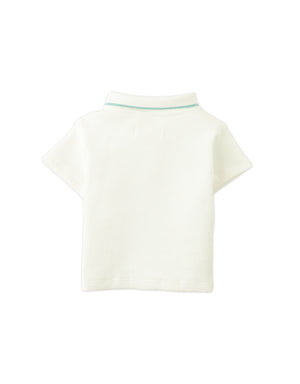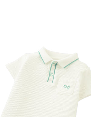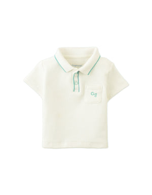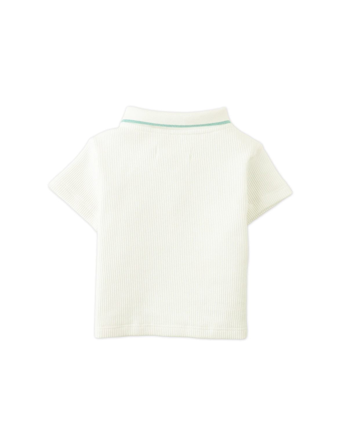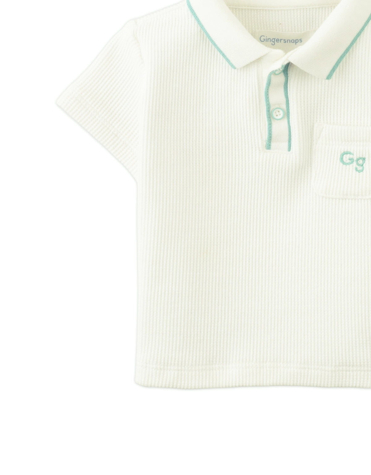 Comfortable and easy to wear, this white short-sleeve waffle knit polo shirt features an embroidered pocket, adding a textured touch to a classic style. Perfect for keeping your little one fresh and fashionable.