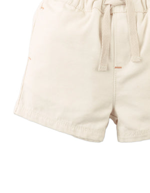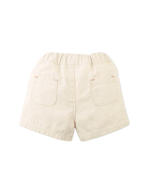 Laid-back and perfect for casual days, these off-white woven canvas pull-on shorts feature a drawstring for an adjustable fit and an embroidered patch for added flair. Ideal for your little one’s warm-weather adventures.