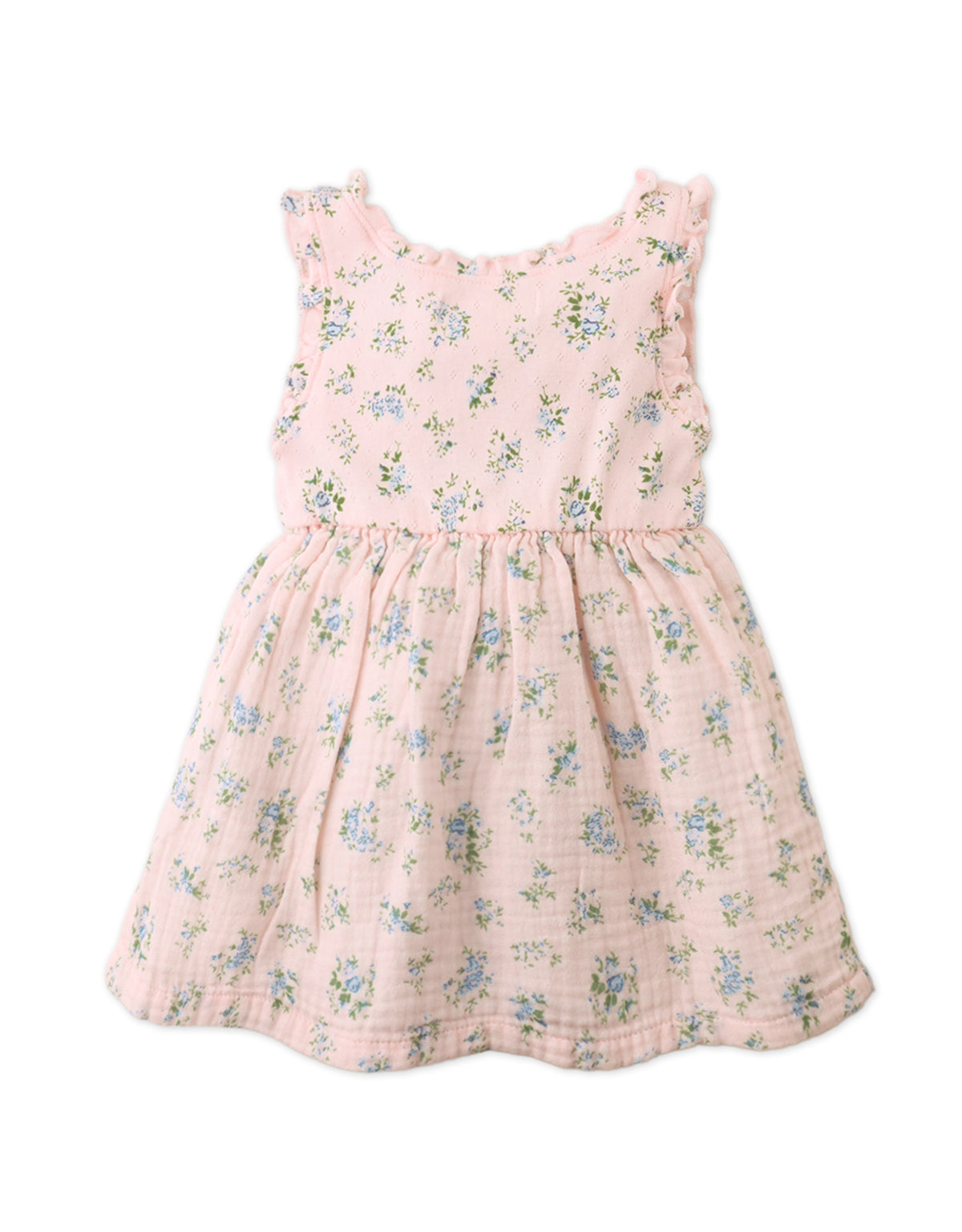 BABY JACKIE PRINTED POINTELLE DRESS WITH RUFFLE DETAILS