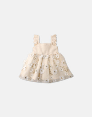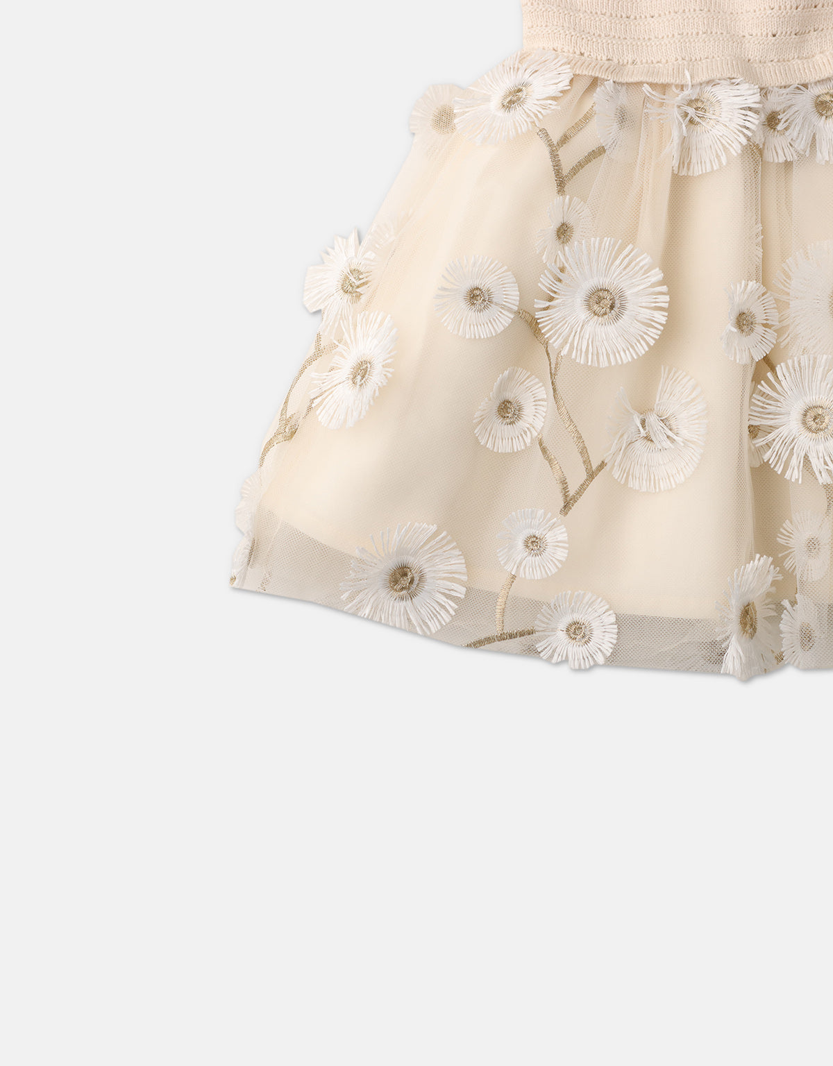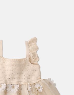 BABY JADE CROCHET-LIKE STYLE KNITTED TOP & FLOWER EMBROIDERED TULLE DRESS