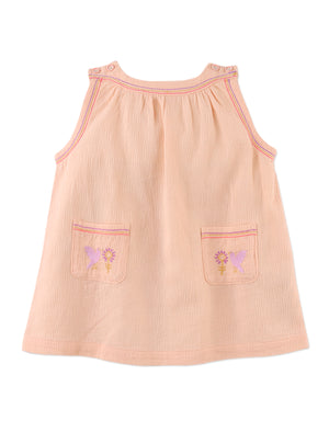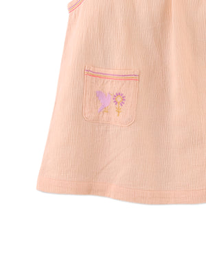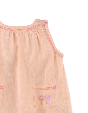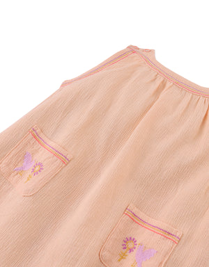 Infuse a touch of boho chic into her wardrobe with our peach Jelena dress featuring adorable pockets, perfect for tiny treasures on her stylish adventures.
