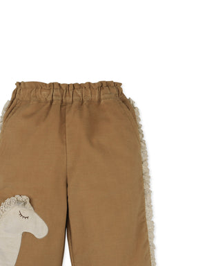 Saddle up with our Baby Jolene Paper Bag Pants in Tan Corduroy, featuring a playful horse face appliqué for a fun look that’s perfect for any adventure.