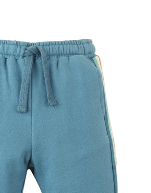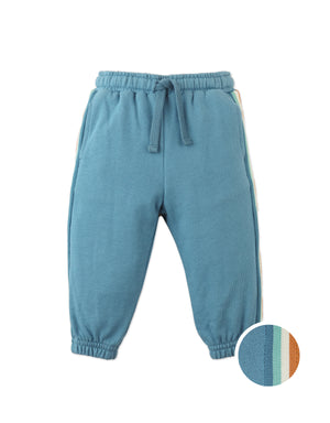 Made with gentle French terry and available in white or blue, these tapered joggers feature contrast side trim and a comfy drawstring waist, perfect for everyday play and tiny adventures.