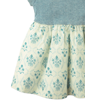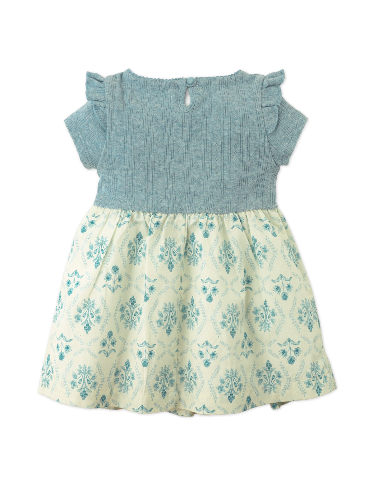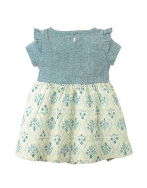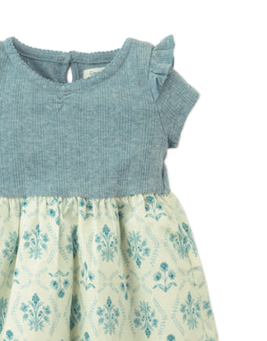 BABY JULIANA DRESS WITH DENIM POINTELLE BODICE AND PRINTED WOVEN SKIRT