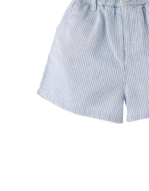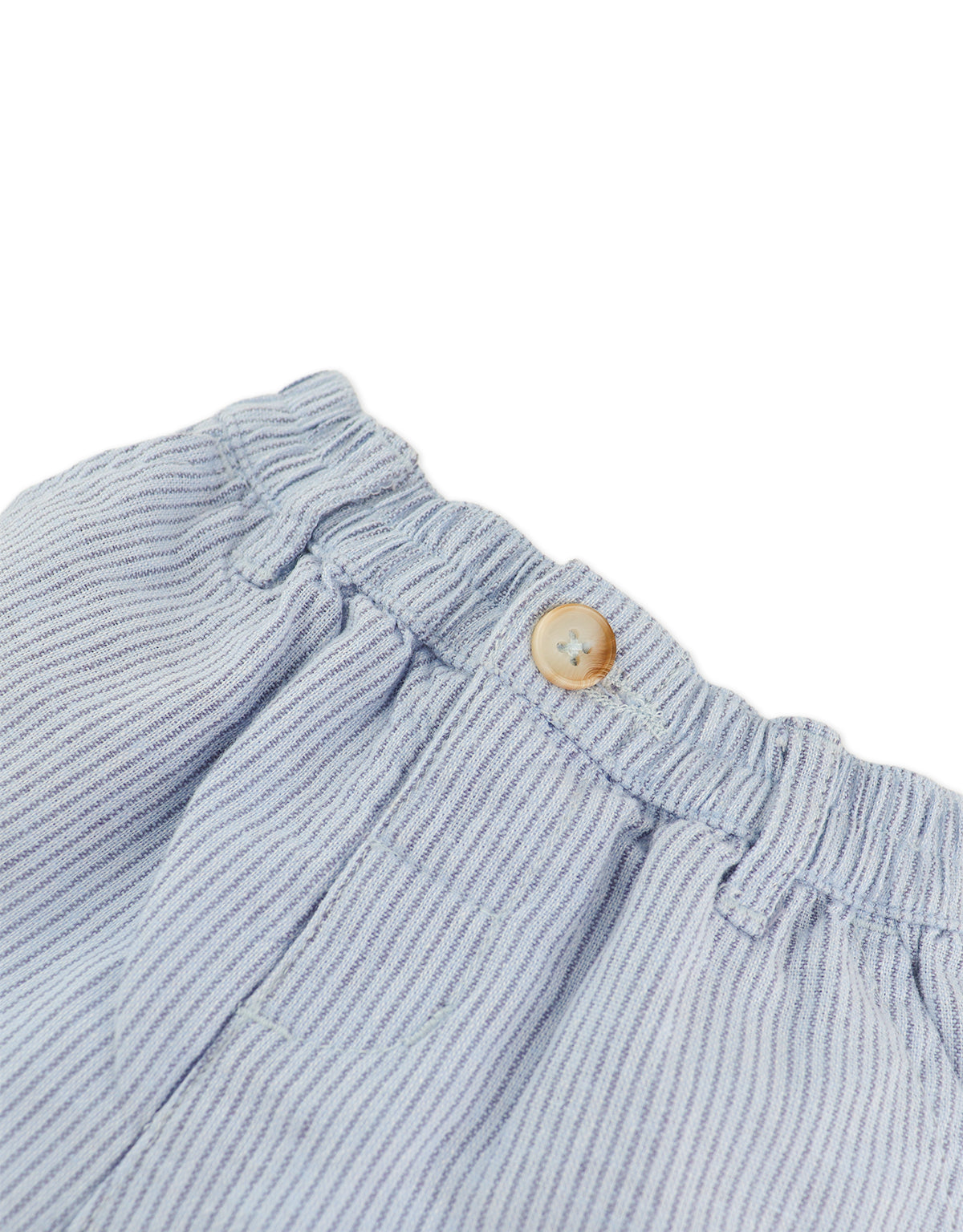 Patterned with stripes, these linen shorts make your little one's every outfit look a little more put together.