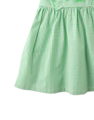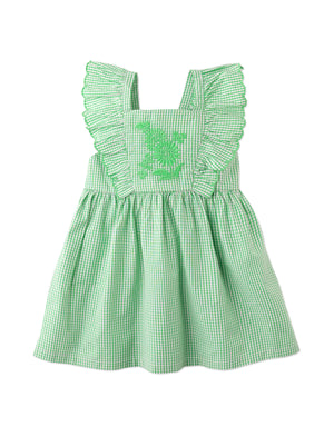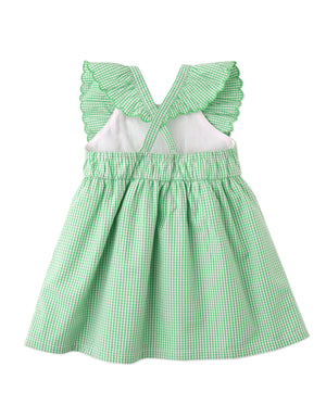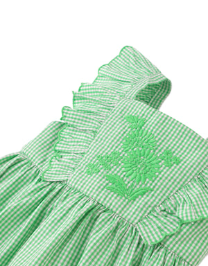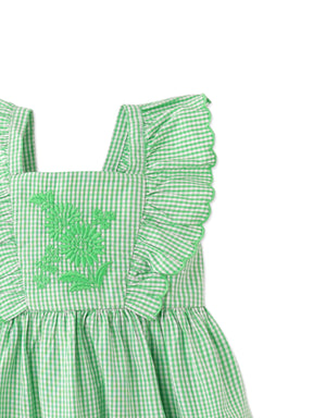 Adorn your sweetheart in charm with our Larisa gingham embroidered dress in a lush green hue, adding a delightful touch of nature's freshness to her ensemble.