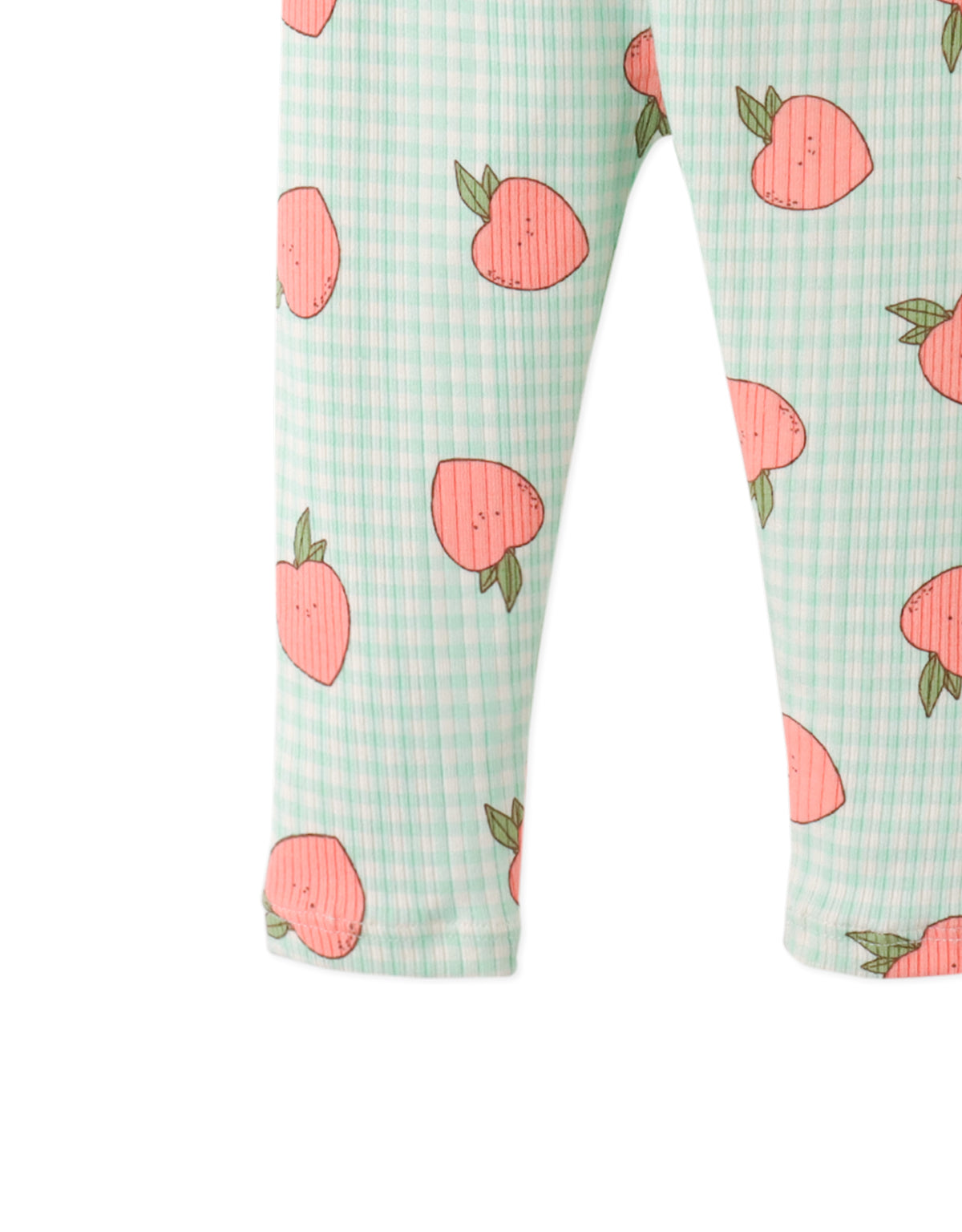 This pair of leggings brings comfort and creativity together in soft ribbed jersey, designed with all-over prints your little one will love. Whether it's the peach-and-gingham charm, the cheeky parrot print, tropical island vibes, or the playful apple and pear combo — each style is a fresh take on fun.