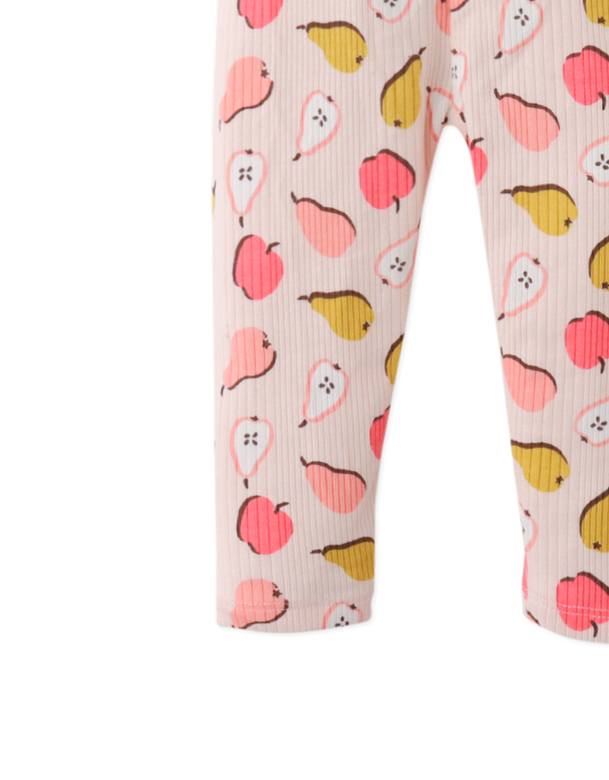 This pair of leggings brings comfort and creativity together in soft ribbed jersey, designed with all-over prints your little one will love. Whether it's the peach-and-gingham charm, the cheeky parrot print, tropical island vibes, or the playful apple and pear combo — each style is a fresh take on fun.