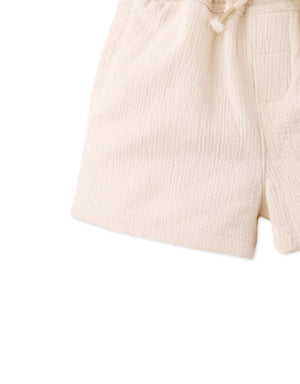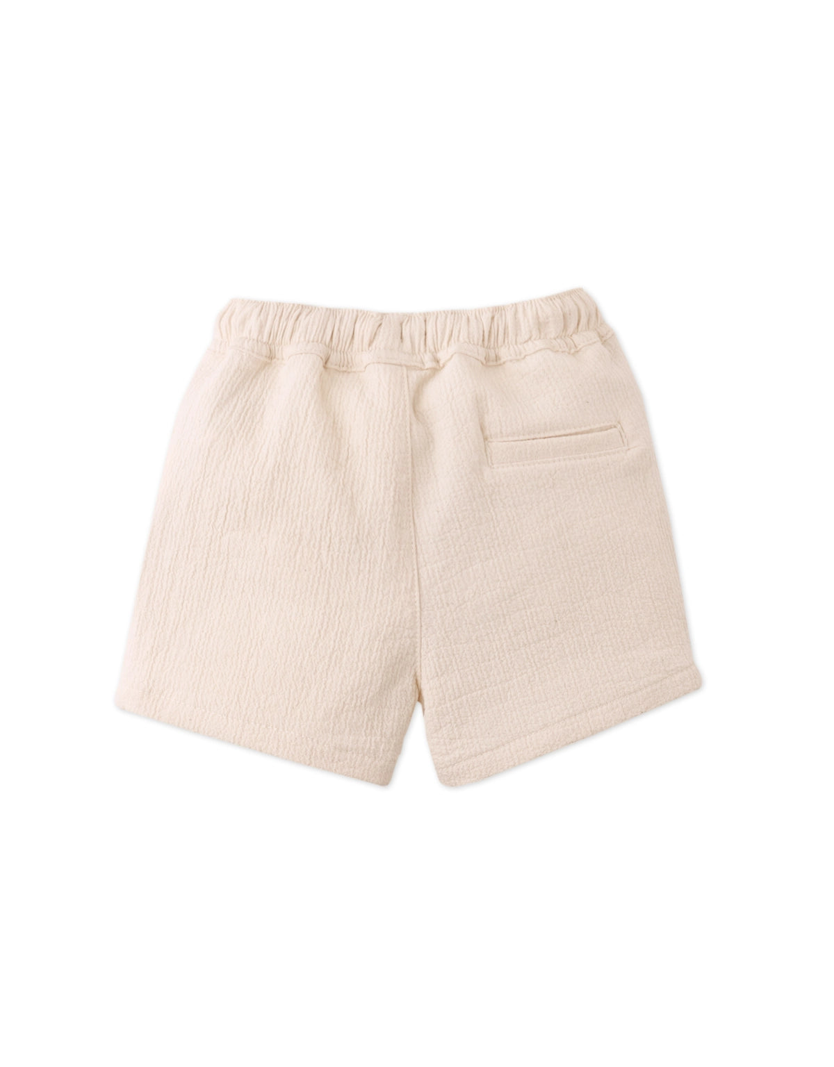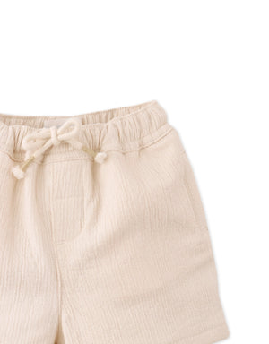 Made from crumpled cotton, these pull-on shorts feature a relaxed silhouette with a drawstring waist in a versatile off-white shade.