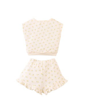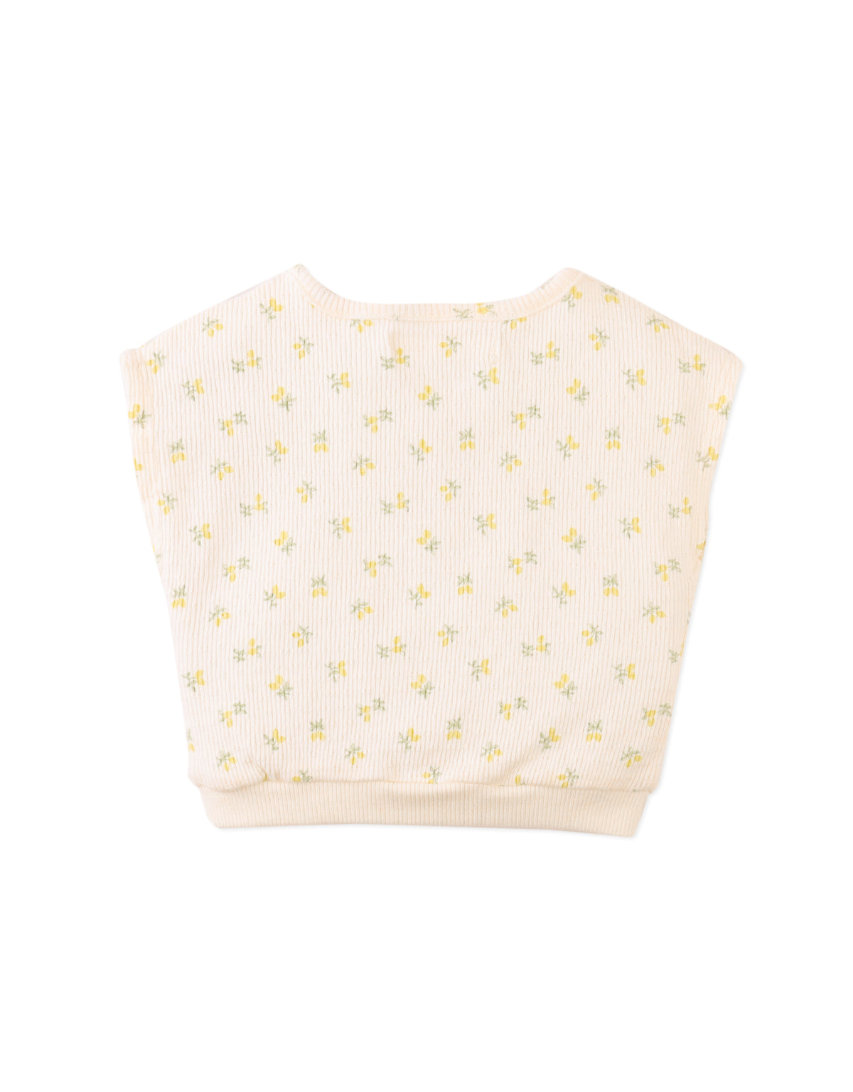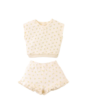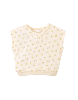 Bursting with sunshine and sprinkled with lemons, this white sleeveless pointelle rib top and shorts set brings juicy energy to every jump, skip, and giggle.