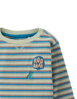 BABY OLAF LONG SLEEVES T-SHIRT STRIPED MEADOW WITH EMBROIDERED DINO AND PRINT DETAIL