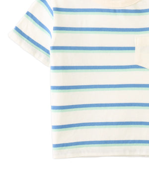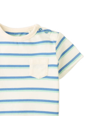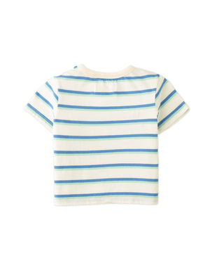 Add some fun to their wardrobe with this striped short-sleeved jersey tee, featuring a stylish and cool shoulder opening for easy on-and-off wear, along with a handy pocket for carrying their small treasures.