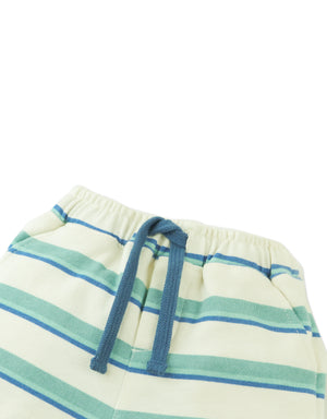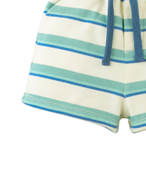 These green and white striped French terry shorts bring breezy comfort and a sporty feel, complete with a stretchy waistband and drawstring for your little buddy's easy all-day wear