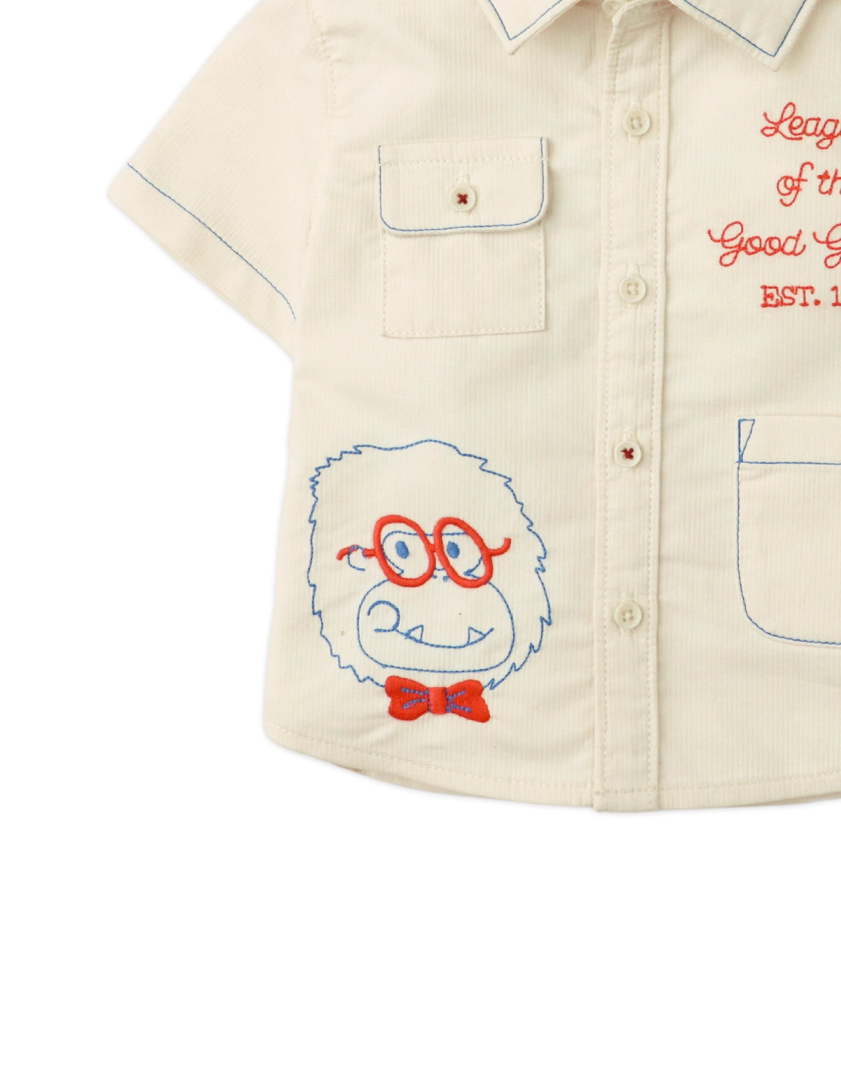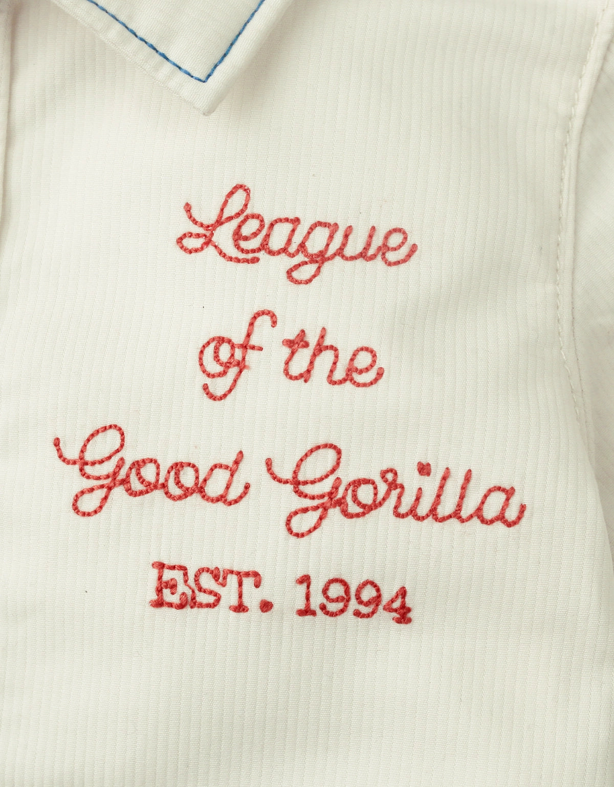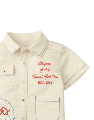 Swing into style with this Bedford cord shirt in off- white, featuring a playful gorilla embroidery for extra charm.