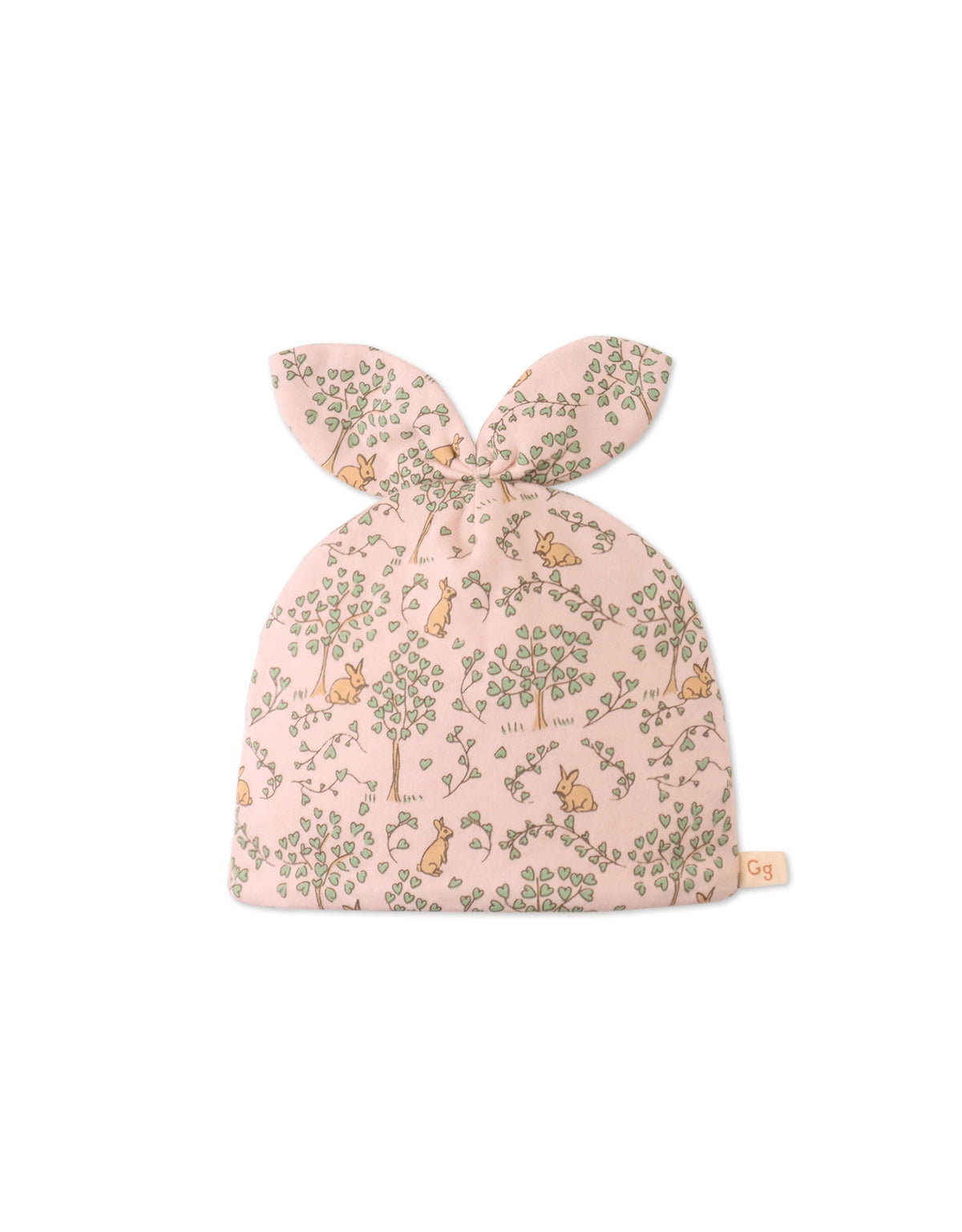 Excellent for adding style to your little one’s outfit, this adorable set features a ribbed fabric bonnet embroidered with a cute bunny face, paired with a soft interlock jersey bonnet adorned with an all-over bunny heart trees print.