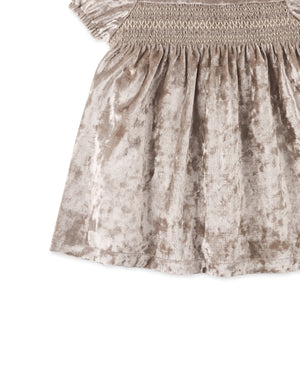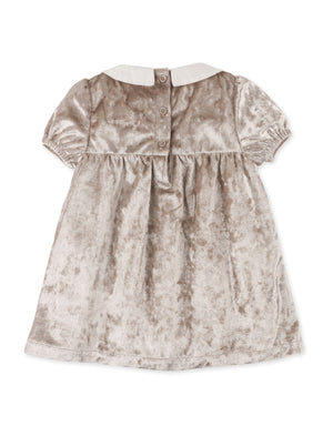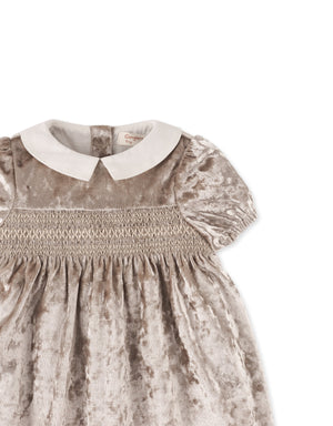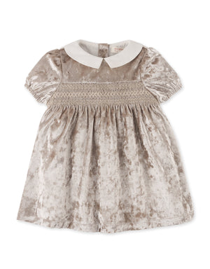 BABY SELINA SHORT SLEEVES SMOCKED DRESS GOLDSANDS WITH COLLAR AND EMBROIDERY DETAILS