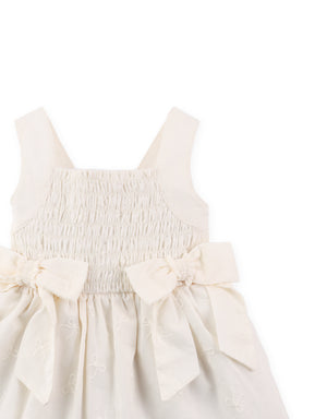 BABY SHIREEN EMBROIDERED SMOCKED DRESS WITH BIG BOW DETAILS