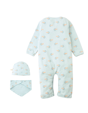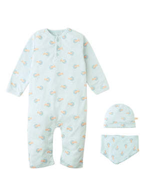 BABY THEODORE 3-PIECE HENLEY JUMPSUIT WITH BIB AND BONNET SET