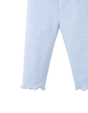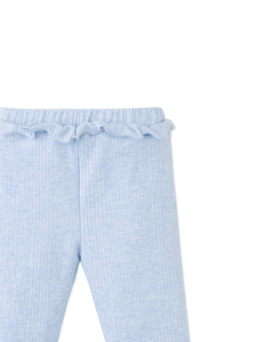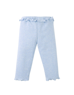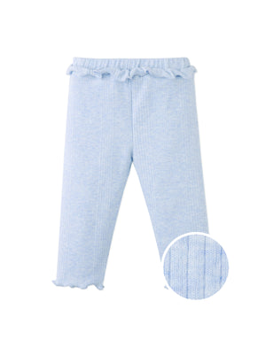 These ruffled leggings in soft ribbed jersey bring comfort and charm in gentle shades of light blue or peach.