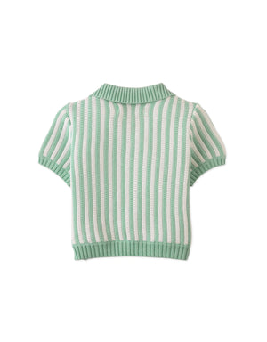 BABY WAYLON VERTICAL STRIPE CROCHET-STYLE KNIT POLO SHIRT