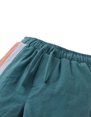 These crumpled cotton shorts bring a fund, laid-back vibe, featuring duotone side stripes for a sporty touch - perfect for your little athlete's sunny day activities.