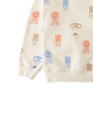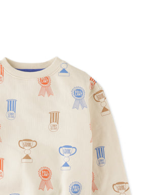BOYS ALL OVER MEDAL PRINT JERSEY FLEECE PULLOVER