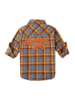 BOYS AMAZING BOY APPLIQUE PLAID SHACKET