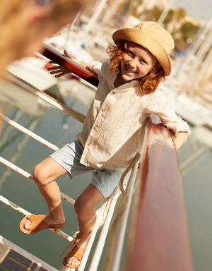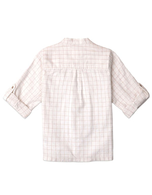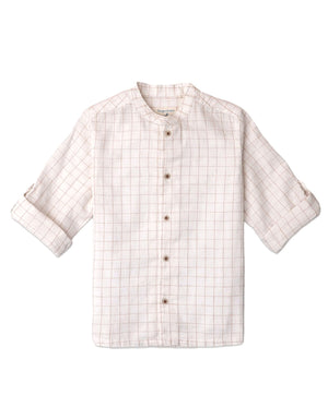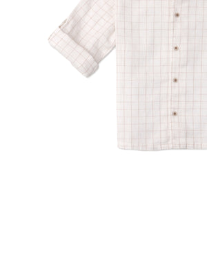 He'll look adorable in this cotton linen polo shirt with the cutest grid print!