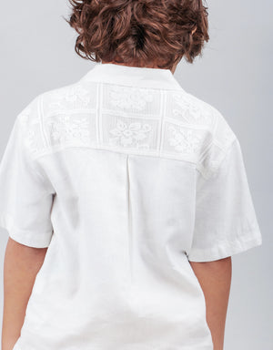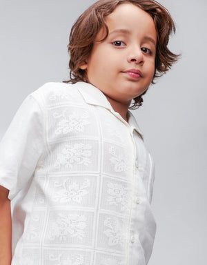 BOYS LACE AND LINEN HALF & HALF SHIRT