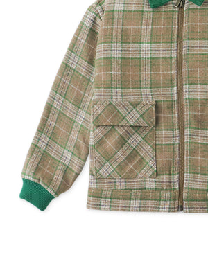 BOYS LEGENDARY BOY EMBROIDERED WOOL CHECKS JACKET WITH SHERPA COLLAR