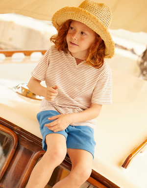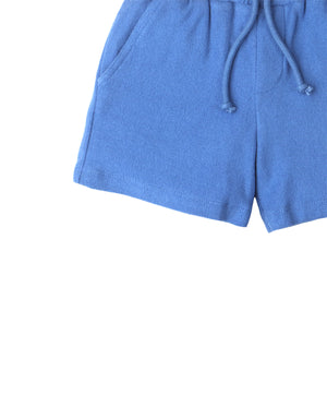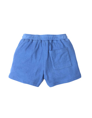 Your little boy will stand out during playtime with these towel-terry pull-on shorts in a deep blue color!