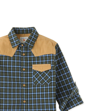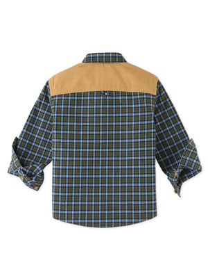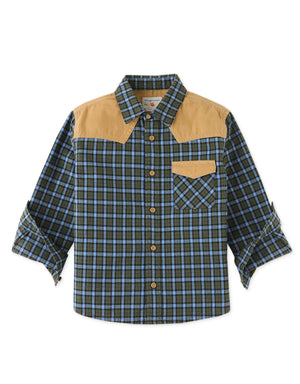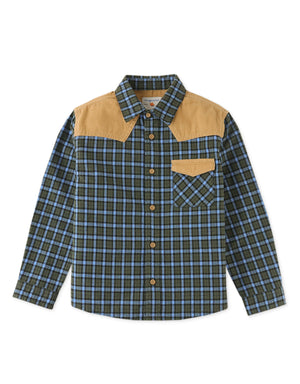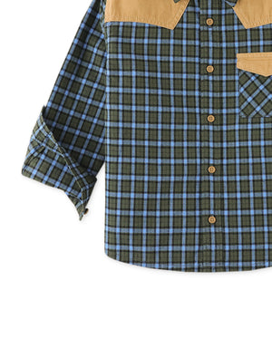 BOYS WOVEN CHECKS WITH CORDUROY COMBI WESTERN SHIRT