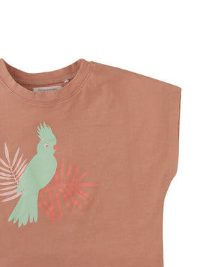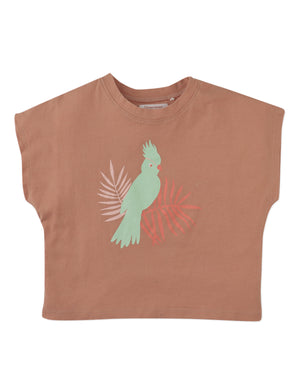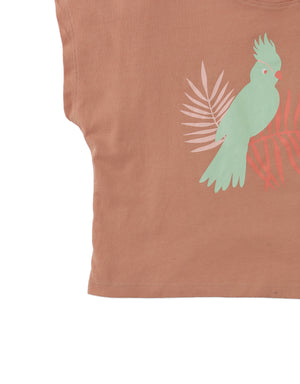 Let your little one breeze through the day in this dolman sleeve t-shirt, featuring relaxed sleeves and your choice of two whimsical prints, a chatty cockatiel or a colorful fruit market.