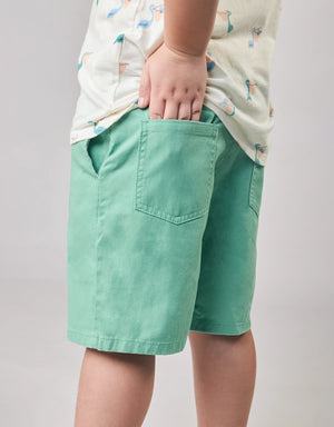 Finished with a brown raffia belt, these green lightweight twill Bermuda shorts offer a breezy, polished look for your little one, perfect for sunny days and dressed-up playdates.