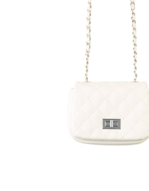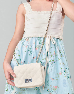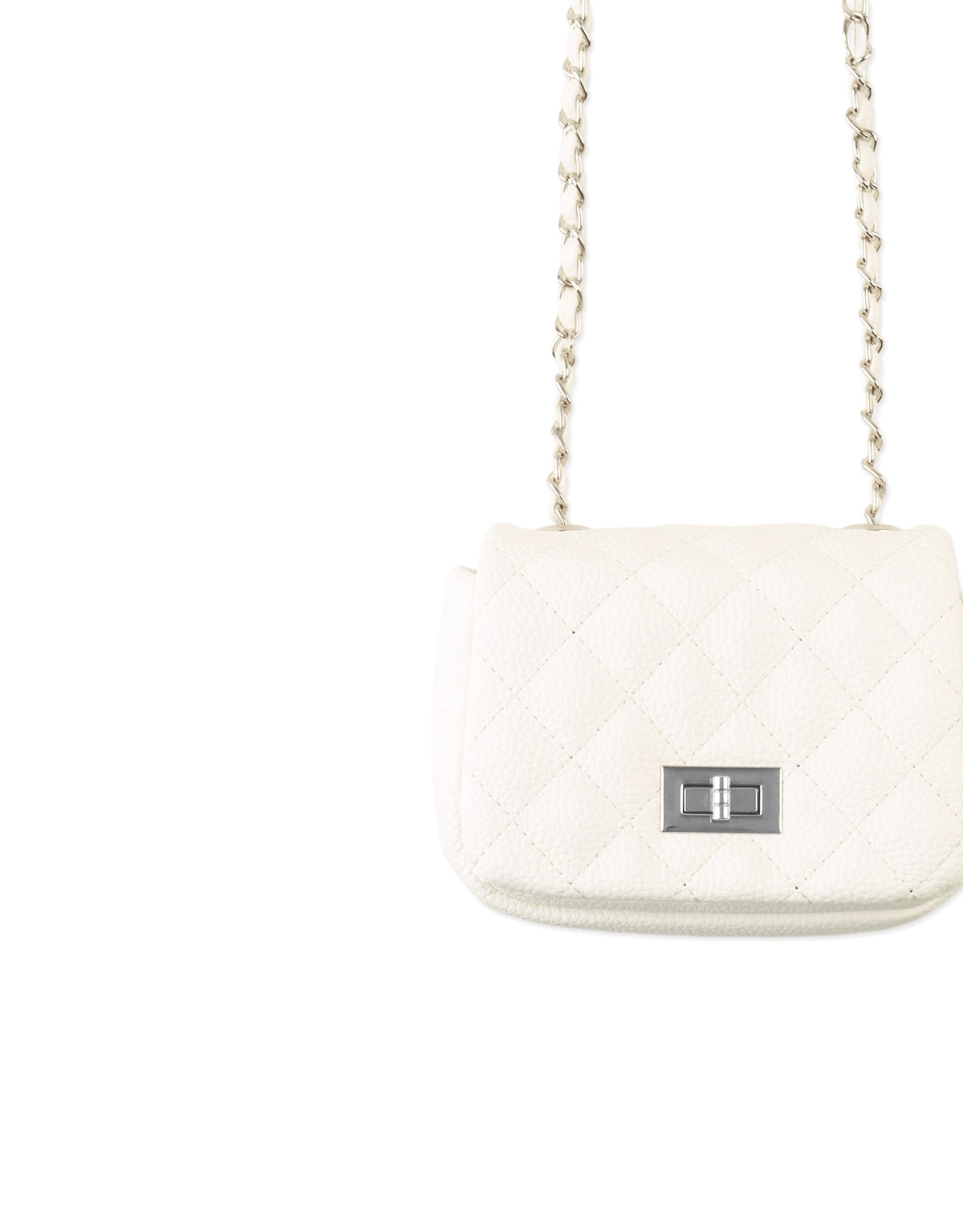 Sleek and stylish, this white faux leather sling bag features a quilted finish that adds a hint of grown-up charm, perfect for your little fashionista’s special outings.