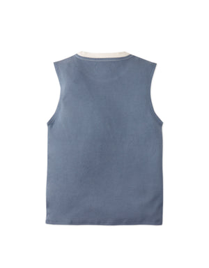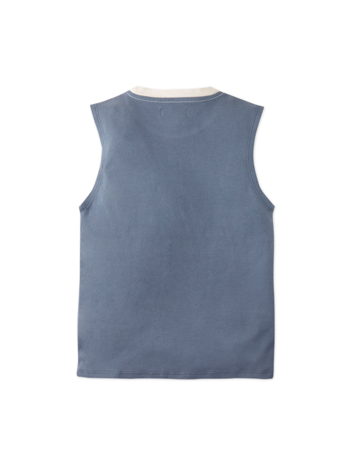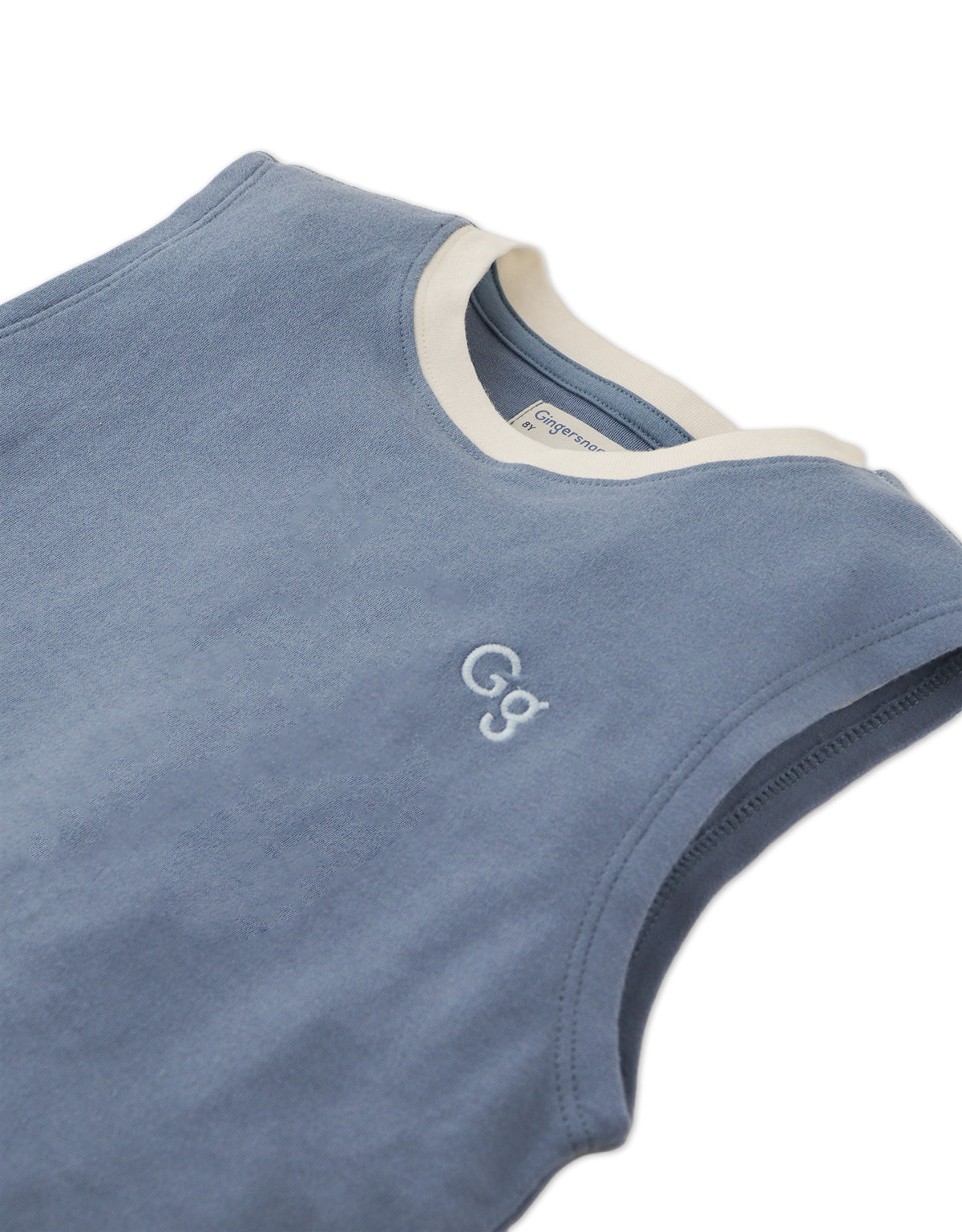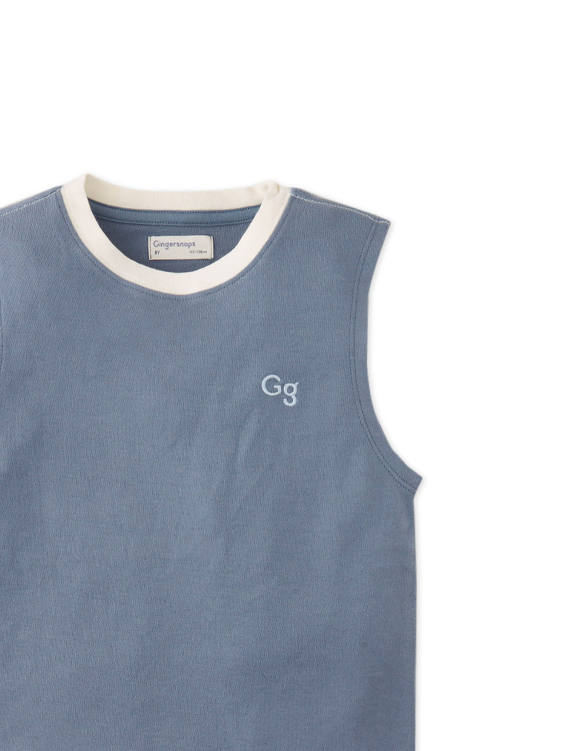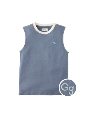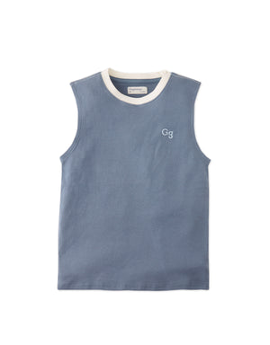 Available in beige or blue, this interlock jersey muscle tee for boys, features a bold contrast neckband and an embroidered logo, combining comfort and style for everyday wear.
