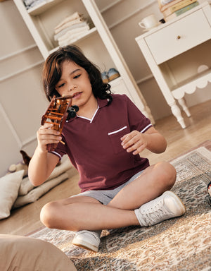 Smart yet easygoing, this red cotton knit polo blends stripes details with relaxed open neckline - perfect for his little adventures and special occasions.