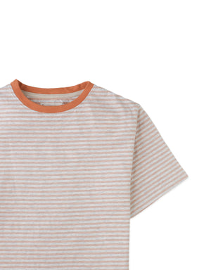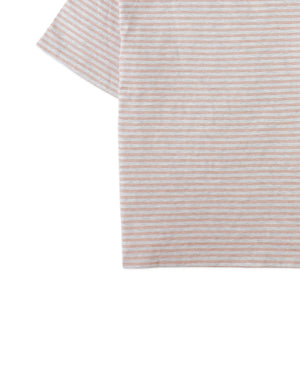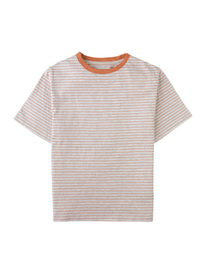 A classic stripe pattern and a soft breeze in one comfy tee. Light, breathable, and made for sunny days — available in caramel and denim hues.