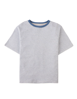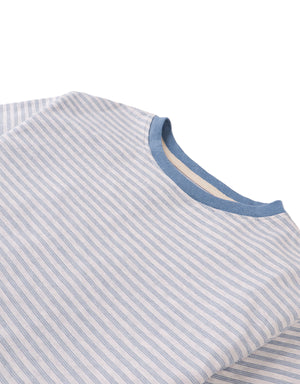 A classic stripe pattern and a soft breeze in one comfy tee. Light, breathable, and made for sunny days — available in caramel and denim hues.