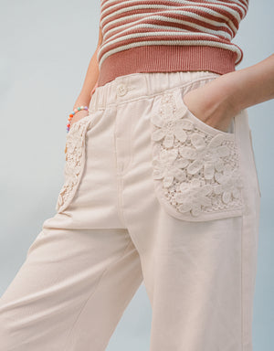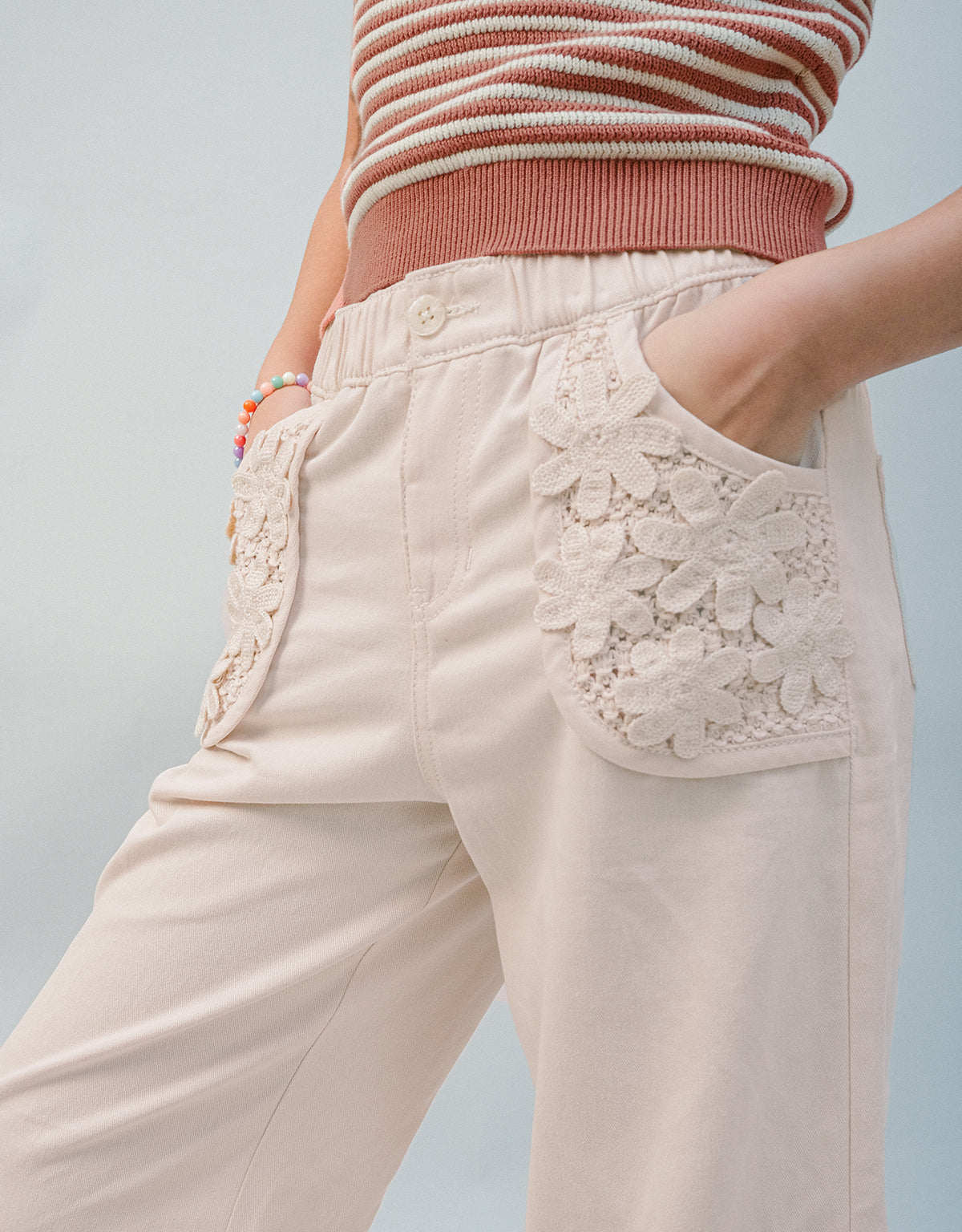 DAISY WIDE LEG PANTS WITH FLORAL APPLIQUED POCKET