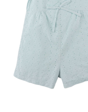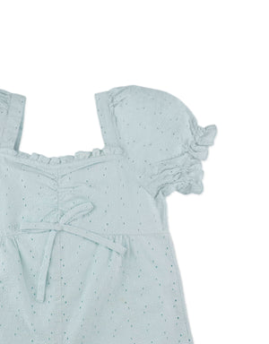 DANIELA BOW EYELET PLAYSUIT WITH RUFFLED SWEETHEART NECKLINE