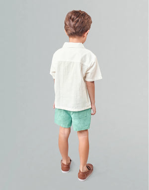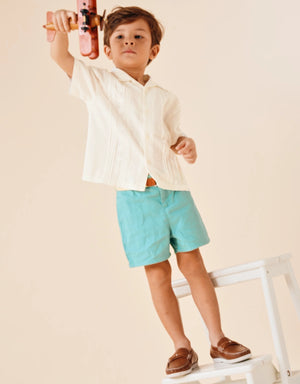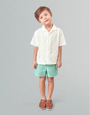 Tailored touches meet everyday ease in this white lightweight short-sleeved cotton guayabera, finished with embroidered details and pintucks, just right for family gatherings or sunny strolls.