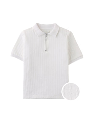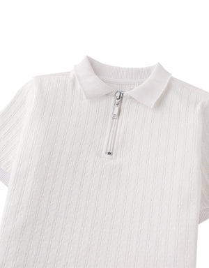 This zipped cable jersey short sleeve polo shirt brings a sophisticated twist to casual style, available in beige or white for easy pairing with any wardrobe