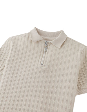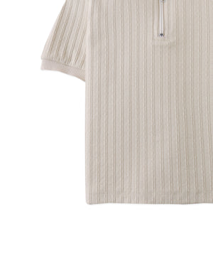 This zipped cable jersey short sleeve polo shirt brings a sophisticated twist to casual style, available in beige or white for easy pairing with any wardrobe.
